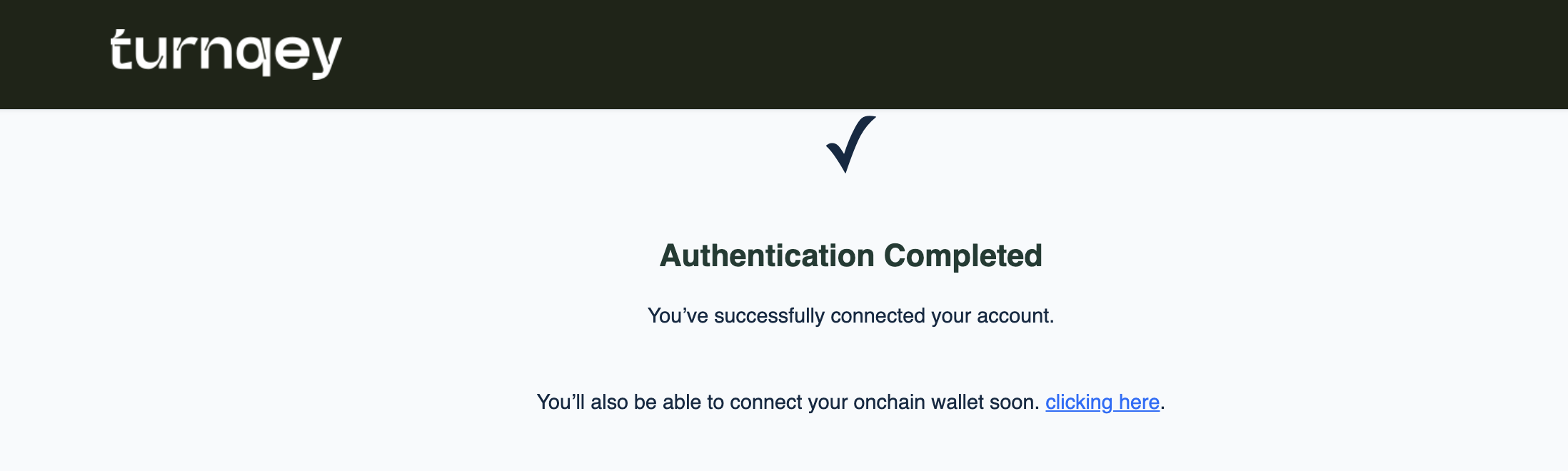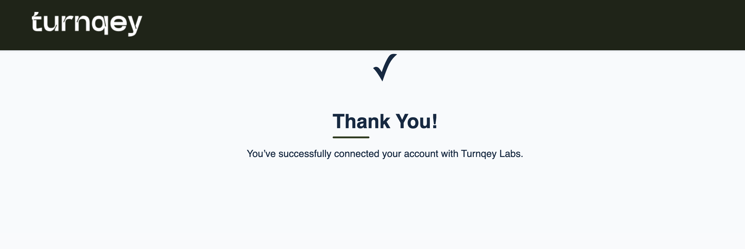 Once successfully authenticated, Turnqey Labs will display a confirmation message indicating successful connection.