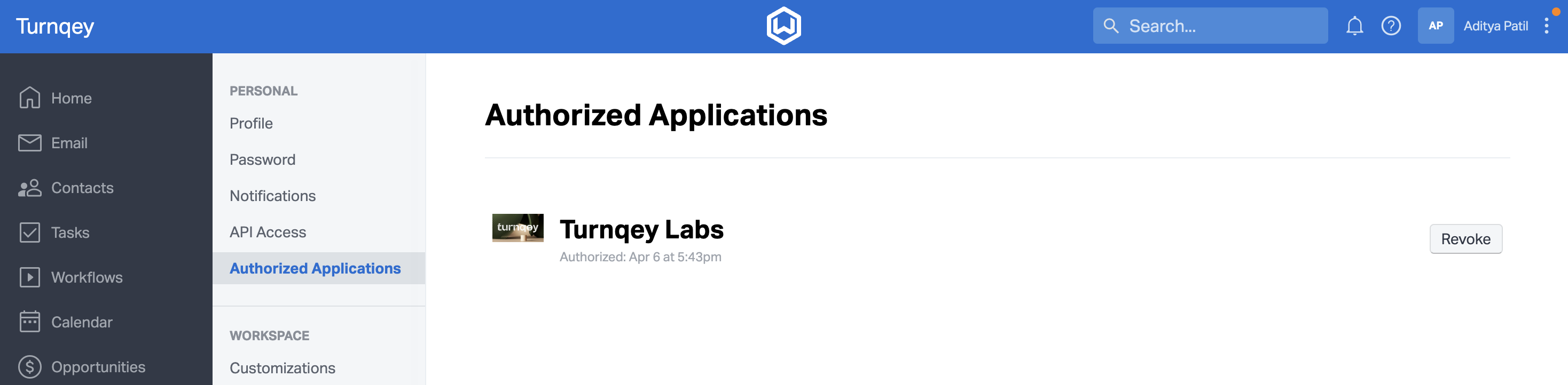 Turnqey Labs listed as an authorized application.