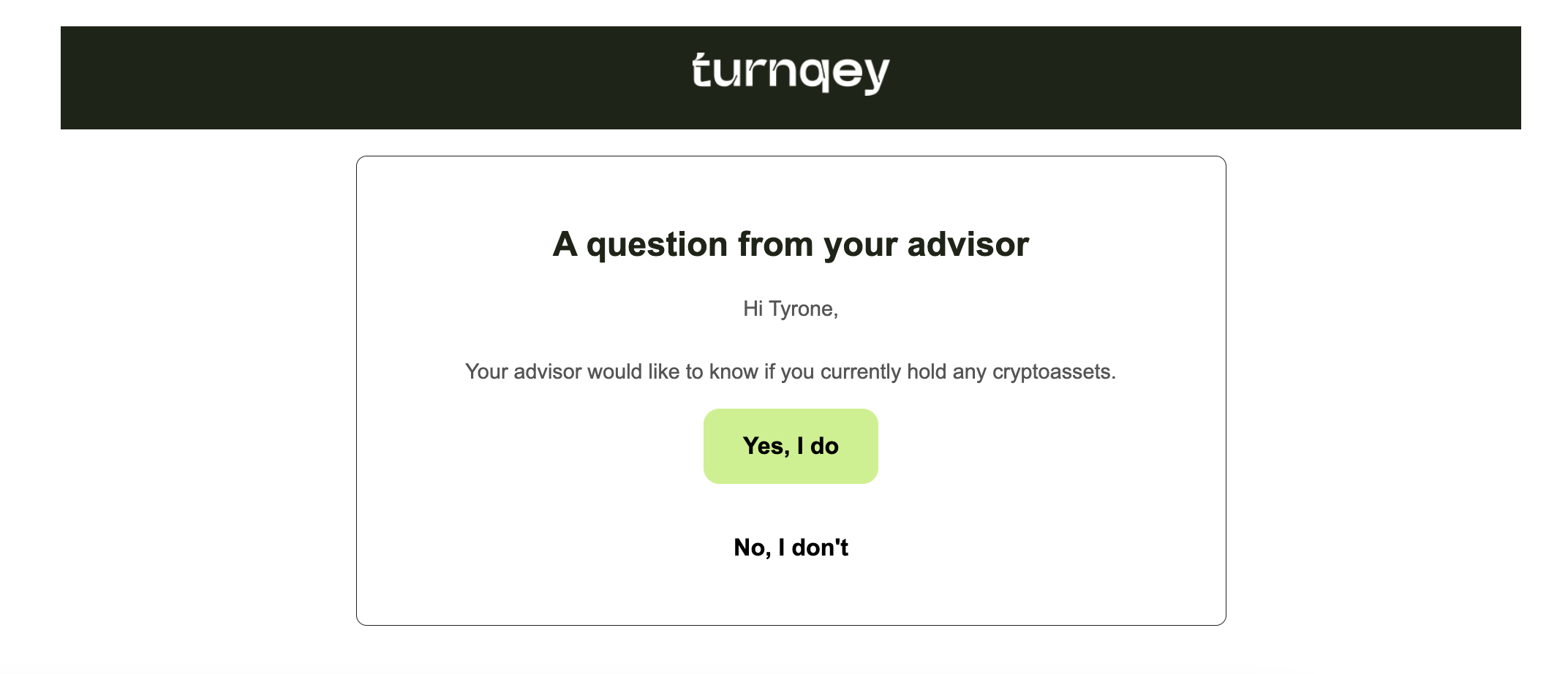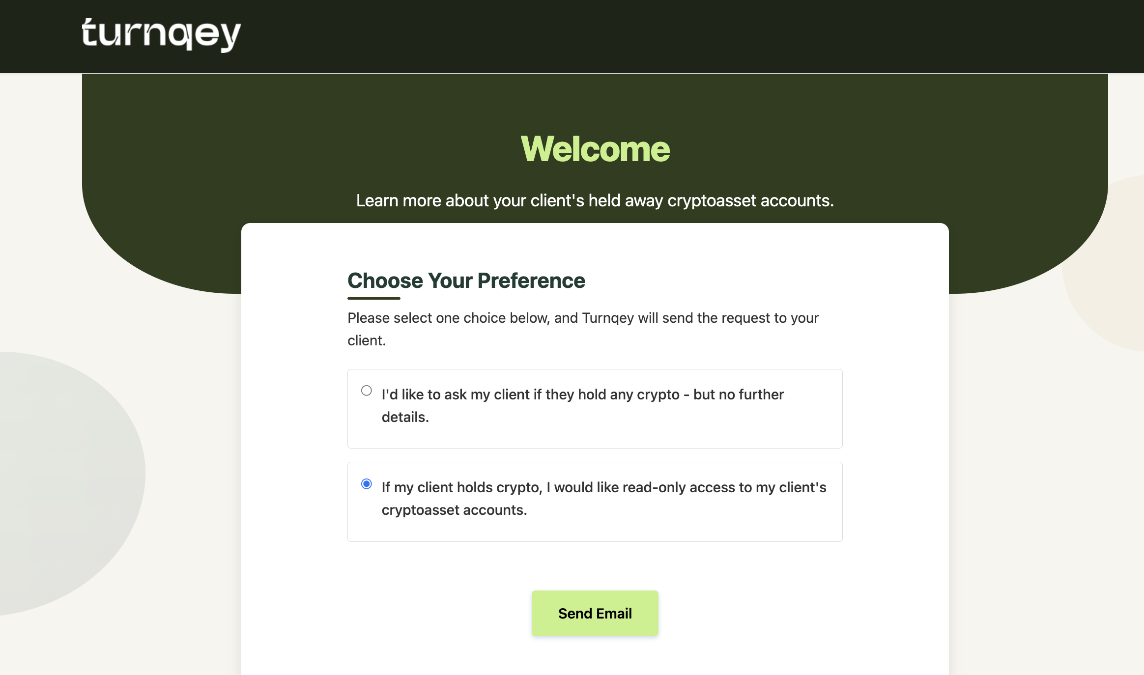 Option 2: Read-Only Crypto Access Sends an email prompting the client to connect their crypto exchange account.
