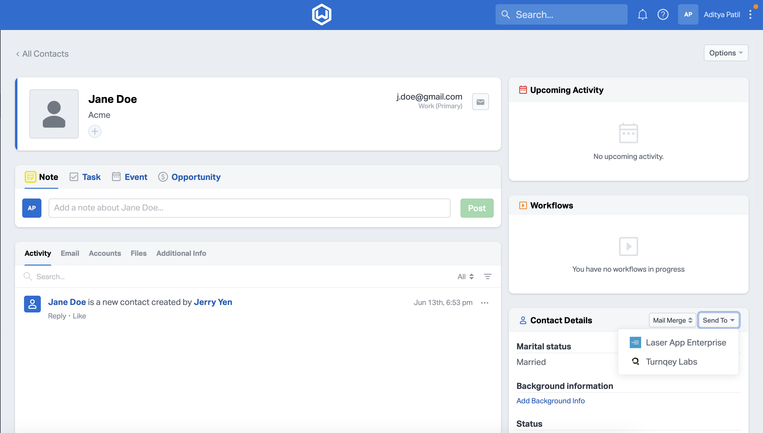 3. Send email to contact: Advisor can now go to any client profile in Wealthbox, click the âSend Toâ button, and click on